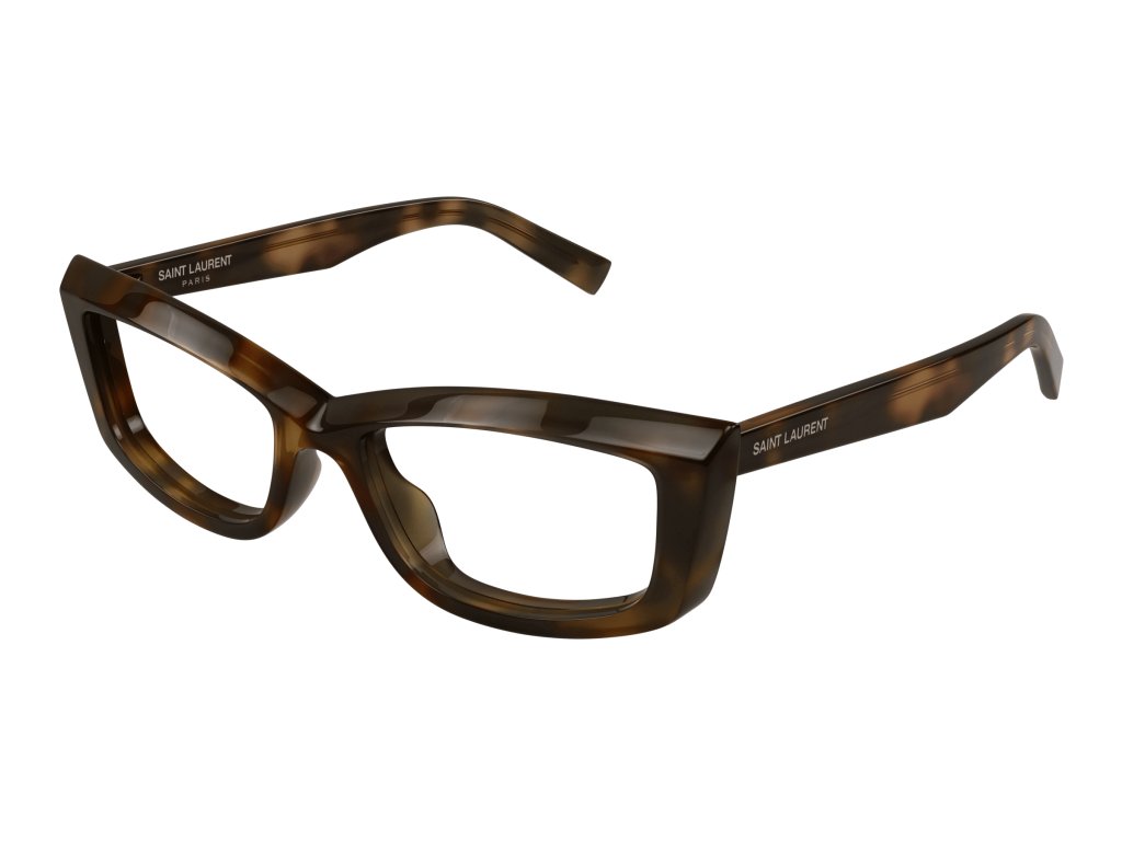 Popis: A SIMPLE, ACETATE CONSTRUCTION IS ELEVATED BY THE SHARP PLAY OF FACETING ON THE FRONT. ICONIC CURVED DESIGN ON THE TOP LINE CREATING A NARROW CAT EYE SHAPE. SAINT LAURENT LASER ENGRAVED LETTERING LOGO ON THE TEMPLE.